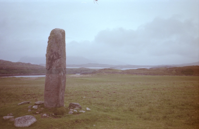 The standing stone across the road from Tiraghoil, looking north-east.